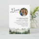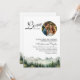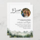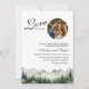 Une élégante invitation de mariage avec des montagnes aquarelles et des pins que vous pouvez customiser avec vos détails.
