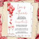 Annoncez la célébration de l'amour avec style grâce à ces invitations de douche de mariée sur le thème de la Saint-Valentin, enchantées ! Ornées de ballons rouges fantaisistes, de cœurs délicats et de verres à champagne élégants, le devant de ces invitations donne le ton romantique avec la douce déclaration "L'amour est dans l'air".