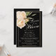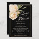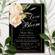 L'amour est dans Bloom White Roses sur Black Bridal Shower Invitation - Une belle, unique, élégante et moderne invitation à la douche nuptiale. Doté d'un bouquet de roses blanches contre un arrière - plan noir élégant avec un cadre en faux or. Combinant calligraphie de script et police de blocs élégante, cette invitation à la douche nuptiale chic exhale le raffinement et l'élégance intemporelle. Donnez le ton pour un moment inoubliable avec des amis et de la famille qui se nourrissent de la future mariée. Modifiez ce modèle d'invitation de douche nuptiale avec vos propres détails d'événement. Pour faciliter la consultation de votre registre de mariages, ajoutez le code QR à l'arrière. Également disponible en téléchargement numérique instantané, parfait pour envoyer par e-mail, texte ou médias sociaux.