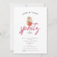 Cette amusante invitation à la douche nuptiale d'été a un thème Love at First Spritz avec des accents d'agrumes. L'illustration frontale est un spritz Aperol aquarelle avec des bouquets d'hibiscus et de fruits. Le dos est un motif de tranche orange aquarelle assorti avec une couleur pantone de l'année viva magenta arrière - plan. C'est amusant et fantasque, parfait pour les douches d'été pour cocktails nuptiaux.