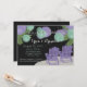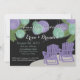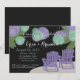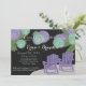 Lampions en papier violet et vert sur des chaises Adirondack, invitation de douche de couple sur le thème de la plage.