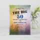 Men's - Celebrating THE BIG 50 Invitation est une invitation d'anniversaire bleu abstrait moderne que vous pouvez changer et personnaliser pour envoyer pour un grand 50ème ou n'importe quelle année, il suffit d'utiliser la fonction "personnaliser ce modèle" pour modifier l'année, le nom, etc. Le dos a un rappel "enregistrer la date" avec des feux d'artifice bleus et l'année d'anniversaire dans un effet carrelé sur un arrière - plan noir.