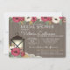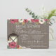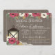 Bourgogne, fleurs de marron et d'or et lanterne nuptiale invitation avec le bois de grange et dentelle de campagne pour une douche nuptiale boho, rustique, champêtre élégant.