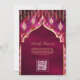 Éblouissez vos invités avec cette élégante invitation de mariage musulmane avec une belle arche décorée de rideaux et lanternes suspendues et QR Code pour RSVP en ligne. Ajoutez simplement les détails de votre événement sur ce modèle facile à utiliser pour en faire une invitation unique.