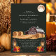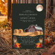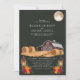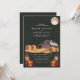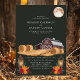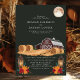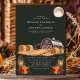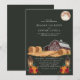 Cette invitation de mariage rustique capture l'essence d'une soirée automnale avec une charmante grange rouge, des lanternes lumineuses et des ballots de foin confortables sous une pleine lune. Le fond vert foncé rehausse les tons terreux chauds, créant une atmosphère sereine et invitante parfaite pour un mariage à la campagne. Ce design combine joliment les éléments rustiques de la ferme avec l'élégance d'une célébration au clair de lune, ce qui en fait un choix idéal pour les couples qui prévoient un mariage d'automne.