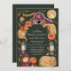 Ce faire-part de mariage enchanteur abrite une grange rustique sous une lune pleine et brillante, entourée de fleurs automnales, de citrouilles et de lanternes vintages. Les tons vert foncé de l'arrière - plan et de la terre chaude créent une atmosphère confortable, idéale pour un mariage de campagne d'automne. Ce design allie à merveille le charme d'une ferme rustique à l'élégance d'une fête en soirée, ce qui en fait un choix idéal pour les couples qui aiment la chaleur de la saison.