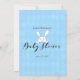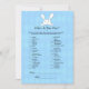 Un lapin lapin blanc au-dessus du titre de jeu avec bébé bleu, diamant Jacquard arrière - plan. Modèles créés pour vous. C'est un What's in your purse baby shower game.