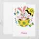 Une illustration super amusante et festive d'un lapin mignon avec un nœud papillon jaillissant d'un œuf floral jaune, entouré de bonbons colorés et de confettis. Ce design joyeux est parfait pour les cadeaux de fête de Pâques pour enfants, les autocollants pour ordinateurs portables et les aimants de fête. Célébrez les vacances avec une explosion de couleur et de douceur !