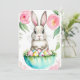 Invitation Lapin Fleurs Roses Vert de Printemps Œuf de Print