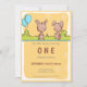 Adorable invitation jaune premier anniversaire avec quelques petits lapins. L'invitation a un rectangle jaune comme couleur arrière - plan avec quelques fleurs blanches. En haut, les petits lapins bruns se font face dans la forêt. Quelques ballons bleu vif sortent de quelques buissons. Vous trouverez ci-dessous toutes les informations que vous devez modifier pour la personnaliser dans les tons marron et gris. Vous pouvez cliquer sur la personnaliser plus loin et modifier ces couleurs, la police et la taille. Illustré et dessiné par Patricia Alvarez.