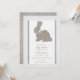 Invitation Lapin rustique en toile de jute grise blanche pour