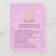 Un lapin lapin tan au-dessus du titre de jeu avec un arrière - plan de Jacquard en diamant violet. Modèles créés pour vous. Il s'agit d'un jeu Over ou Under baby shower.