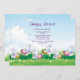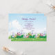 Une conception adorable comportant six lapins blancs, chacun avec une lettre sur leur chemise pour représenter le mot "Pâques". Ils sont tous les oeufs décorés par participation qu'ils ont trouvés caché dans l'herbe. Quelle invitation merveilleuse pour une chasse à oeufs !