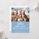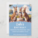 Une invitation à la fête d'anniversaire avec des lapins qui peuvent être customisés selon vos besoins. Sur cette image de charme trois lapins jubilants se rassemblent dans une campagne pittoresque pour célébrer un anniversaire. Habillés pour impressionner de cravates d'arc, les lapins se rassemblent autour d'un gâteau à l'allure délicieuse orné de bougies éclairées. L'ambiance festive est renforcée par des ballons flottants dansant dans la brise au-dessus d'eux. Le décor est un paysage serein avec une végétation luxuriante, des collines ondoyantes et un ciel bleu vif parsemé de nuages doux, créant un cadre enchanteur pour leur célébration. Cette invitation de fête d'anniversaire est parfaite pour toute personne qui adore les lapins.