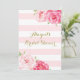 Les invitations nuptiales personnalisées de douche avec le rose en pastel léger rougissent et les rayures blanches motif, les détails d'or et les fleurs assez roses de cru d'aquarelle. Perfectionnez pour un ressort ou des wedding showers d'été.