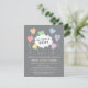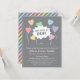 Elle est prête à sauter ! Une invitation colorée de baby shower d'inviter la famille et les amis à la mère à être baby shower ! L'invitation a les ballons en forme de coeur colorés dans des couleurs en pastel de l'arc-en-ciel avec un grand bruit au milieu ! Les couleurs diffèrent bien de l'arrière - plan gris de texture. Sur l'inverse la page est un motif incliné de rayures avec des couleurs assorties. Personnalisez facilement avec vos détails de partie de baby shower.