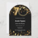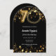 Une invitation photo moderne et design pour une fête de 70e anniversaire. Un arrière - plan noir classique, décoré de faux étoiles dorées. Personnalisez et ajoutez les détails de votre fête.