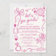 Giddy up, ladies! Celebrate the bride-to-be with this trendy "Let’s Go Girls" Disco Cowgirl Bachelorette Invitation. Featuring a vibrant hot pink color palette, playful western illustrations (like horseshoes, cowboy boots, and cacti), and a shimmering disco ball, this suite is perfect for a Nashville, Austin, or Scottsdale weekend. This double-sided design includes a formal invitation on the front and a full weekend itinerary on the back, making it easy for your "I Do" crew to keep track of every brunch, horseback ride, and line dancing session. Whether you’re calling it a "Last Rodeo" or a "Nashville Bach," this editable template is the ultimate way to set the vibe for a neon-lit weekend!