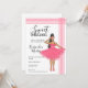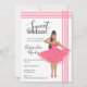 Invitation de 16e anniversaire de la mode Latina Babe rose. Le dessin la représente dans une belle robe rose avec des détails de broderie. Elle porte également des lunettes de soleil et des chaussures roses. Illustration de mode mignonne pour la fille féminine et girly. Une carte d'invitation d'illustration mignonne que toute votre famille et vos amis adoreront.