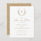 Elegant Laurel Wreath Monogram Crest Wedding Enregistrer la Carte Date. Mariage traditionnel Enregistrer la date Invitation. Couronne dorée Monogramme Crest Enregistrer la carte de date