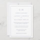 Faire-part de mariage tout-en-un simple, moderne et élégant, avec votre monogramme à deux lettres en haut et vos détails entourés d'une fine bordure. Tous les éléments de conception sont bleu poussiéreux sur un arrière - plan blanc et peuvent être changés en n'importe quelle couleur que vous souhaitez dans l'outil d'édition de conception. L'arrière dispose de tous vos détails mariages, éliminant le besoin d'une carte d'enceinte séparée, ce qui en fait une suite de faire-part de mariage économique. Un design chic et design qui conviendra à un couple minimaliste.
