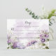 Boho rustique RSVP avec lavande, violet et fleurs sauvages d'aquarelle mauve sur un arrière - plan clair violet éclaboussé d'aquarelle. POUR LES ARTICLES CORRESPONDANTS, VEUILLEZ M'EMAIL À SHUTTERBUG600@YAHOO.COM.*** NOTE *** Si vous avez besoin d'aide pour cette invitation ou pour des demandes personnalisées avec lesquelles vous avez besoin d'aide, ne placez pas cette marchandise dans votre panier. Au lieu de cela, envoyez-moi votre demande par courriel à shutterbug600@yahoo.com. Toute expédition et impression est gérée par Zazzle et les questions concernant votre commande doivent être adressées à Zazzle support : https://www.zazzle.com/about/ask. Je n'ai pas accès à votre compte et je ne peux pas apporter de modifications une fois que vous avez passé votre commande. Je n'ai pas accès à votre compte et je ne peux pas apporter de modifications une fois que vous avez passé votre commande. De plus, le CONVERSATION n'est pas en vie, mais je réponds dans les 24 heures.
