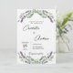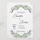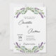 Un arrière - plan blanc décoré de fleurs de lavande et de verdure d'eucalyptus. Personnalisez et vos noms et détails.