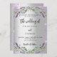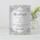 Une faire-part de mariage moderne et design. Un arrière - plan faux argenté avec parties scintillant violette, étincelants, fleurs de lavande, fleurs et végétation d'eucalyptus. Personnalisez et ajoutez vos noms et les détails.