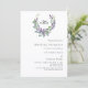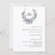 Un arrière - plan blanc décoré d'une fleur de lavande et d'une couronne d'eucalyptus, crête. Personnalisez et votre monogramme, noms et détails.