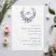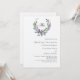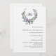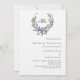 Un arrière - plan blanc décoré d'une fleur de lavande et d'une couronne d'eucalyptus, crête. Personnalisez et votre monogramme, noms et détails.