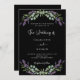 Un arrière - plan noir décoré de fleurs de lavande et de verdure d'eucalyptus. Personnalisez et vos noms et détails.