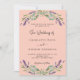 Un arrière - plan tendance couleur pêche décoré de fleurs de lavande et de verdure d'eucalyptus. Personnalisez et vos noms et détails.
