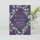 Cette invitation à la douche nuptiale à l'eucalyptus et à la lavande rustique est parfaite pour un wedding shower extérieur simple et élégant. Le design floral présente des feuilles d'eucalyptus aquarelle et de la verdure avec des sprigs de fleurs sauvages violets avec un arrière - plan prune violet.