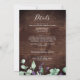 Le tout dans un faire-part de mariage, ce fleuri en bois de lavande rustique est parfait pour une mariage extérieure simple et élégante. Le design floral présente des feuilles d'eucalyptus aquarelle et de la verdure avec des sprigs de fleurs sauvages violets sur l'arrière - plan en faux bois. Enregistrez du papier en incluant les détails au verso du faire-part de mariage plutôt que sur une carte de boîtier séparée. Inclure également les informations RSVP si votre invité répondra par voie électronique (facultatif).