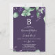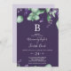 Ce faire-part de mariage en monogramme violet de lavande rustique est parfait pour un mariage extérieur simple et élégant. Le design floral présente des feuilles d'eucalyptus aquarelle et de la verdure avec des sprigs de fleurs sauvages violets sur un arrière - plan prune violet. Personnalisez la carte avec votre dernier monogramme initial.