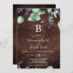 Ce faire-part de mariage en monogramme de lavande rustique est parfait pour un mariage extérieur simple et élégant. Le design floral présente des feuilles d'eucalyptus aquarelle et de la verdure avec des sprigs de fleurs sauvages violets sur un arrière - plan en faux bois. Personnalisez la carte avec votre dernier monogramme initial.