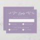 Cette belle carte de réponse mariage rustique dispose d'un arrière - plan lavande violet avec des fleurs sauvages blancs dessinés à la main et une typographie élégante. C'est le design parfait pour un mariage rustique mais élégant ! Disponible en plusieurs couleurs... voir la collection design pour plus d'articles.