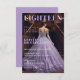 Vous cherchez quelque chose d'élégant pour annoncer votre célébration de jalon? Cette invitation à 18ème anniversaire à thème lavande allie un agencement sophistiqué de style magazine avec un grand escalier en toile de fond pour un look intemporel et gracieux. La photo arrière - plan n'est qu'un échantillon et peut être remplacée par votre propre image pour correspondre à votre robe, à votre palette de couleurs ou à votre thème de fête. Conçu pour les débutants ou toute personne célébrant leur étape dans une salle de bal ou un cadre formel, cette invitation crée une belle première impression pour une soirée inoubliable. Idéal pour les fêtes de début, les anniversaires formels ou les événements jalons élégants.