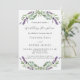 Un arrière - plan blanc décoré de fleurs de lavande et de verdure d'eucalyptus. Personnalisez et vos noms et détails. Retour : lavande, arrière - plan violet.