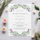 Un arrière - plan blanc décoré de fleurs de lavande et de verdure d'eucalyptus. Personnalisez et vos noms et détails.
