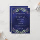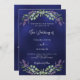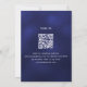 Un arrière - plan bleu marine décoré de fleurs de lavande et de verdure d'eucalyptus. La couleur bleue est inégale. Personnalisez et vos noms et détails. Retour : ajoutez l'URL de votre site Web mariage au code QR pour plus de détails et/ou RSVP.