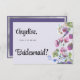 Serez-vous ma demoiselle d'honneur ? Cette simple et élégante aquarelle lavande, rose et violet fleur sauvage printemps mariage Bridesmaid Invitation est un choix parfait pour les couples à la recherche d'une touche romantique et simple à leur grand jour. Ce cadre de fleurs en aquarelle peint à la main entoure vos détails mariages. Offrez à vos invités un merveilleux aperçu de votre mariage pour venir cette invitation sera un ajout fantastique à vos événements mariages.