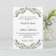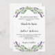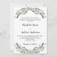 Un arrière - plan blanc décoré de fleurs de lavande et de verdure d'eucalyptus. Personnalisez et vos noms et détails.