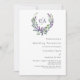 Un arrière - plan blanc décoré d'une fleur de lavande et d'une couronne d'eucalyptus, crête. Personnalisez et votre monogramme, noms et détails.