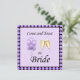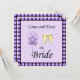 Venez trinquer la Mariée avec des ballons de lavande et des lunettes de champagne à l'avant. Ballons et toutes les informations pour votre événement au dos de cette jolie invitation violette.