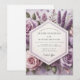 Soft lavender roses and delicate sprigs create a dreamy, romantic atmosphere. This design evokes a sense of gentle elegance and whimsical charm, perfect for an enchanting occasion. The color palette features serene purples and subtle greens.