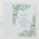 This design features a soft watercolor palette of lavender purple and mint green set against a pale blue backdrop. Delicate sprigs of lavender and lush hydrangea clusters create a serene and romantic atmosphere. Elegant greenery and botanical foliage wrap around the composition, evoking a fresh and airy feel for a seasonal event.