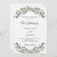 Un arrière - plan blanc décoré de fleurs de lavande et de verdure d'eucalyptus. Personnalisez et vos noms et détails. Retour : Personnalisez et ajoutez votre photo dans le cadre de l'arc. Ajouter vos initiales monographiques (ou supprimer)