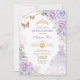L'invitation parfaite pour la quinceañera de votre fille est enfin là ! Cette belle et chic invitation de quinceañera présente d'élégants roses d'aquarelle violet, une robe princesse lavande brillante, une tiare de parties scintillant dorée et deux petits papillons sucrés. Cliquez sur le bouton "customiser plus loin" si vous souhaitez réorganiser et formater le style et le placement du texte.