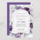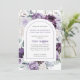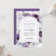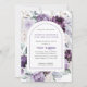 Cette faire-part de mariage dégage une élégance romantique avec un motif floral d'aquarelle douce. Un agencement luxuriant de fleurs violettes, lavandes, blanches et vertes, avec des roses et des pivoines, encadre le design dans une douce bordure ovale. Les fleurs sont délicatement peintes, donnant à l'oeuvre une sensation rêveuse et inspirée du jardin. La zone de texte centrale est propre et équilibrée, encadrée par un contour pourpre subtil qui complète la palette environnante. Dans l'ensemble, l'invitation allie charme classique et beauté botanique, parfait pour un vignoble ou une fête en plein air.